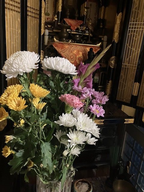 画像は、お供えされたお花を