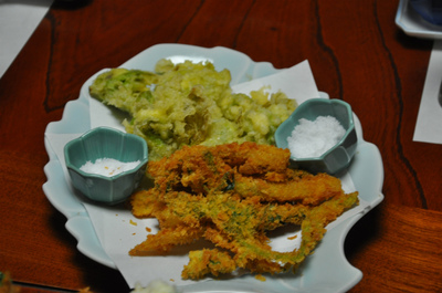 季節の天ぷら、ふきのとうと、ウドの穂先。